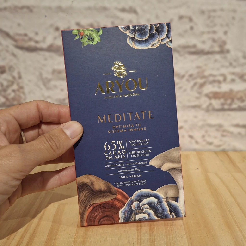 Aryou fusiona los poderosos beneficios de los hongos funcionales con los extractos adaptógenos de plantas de la alimentación Ayurveda, para crear un blend de chocolate holístico.