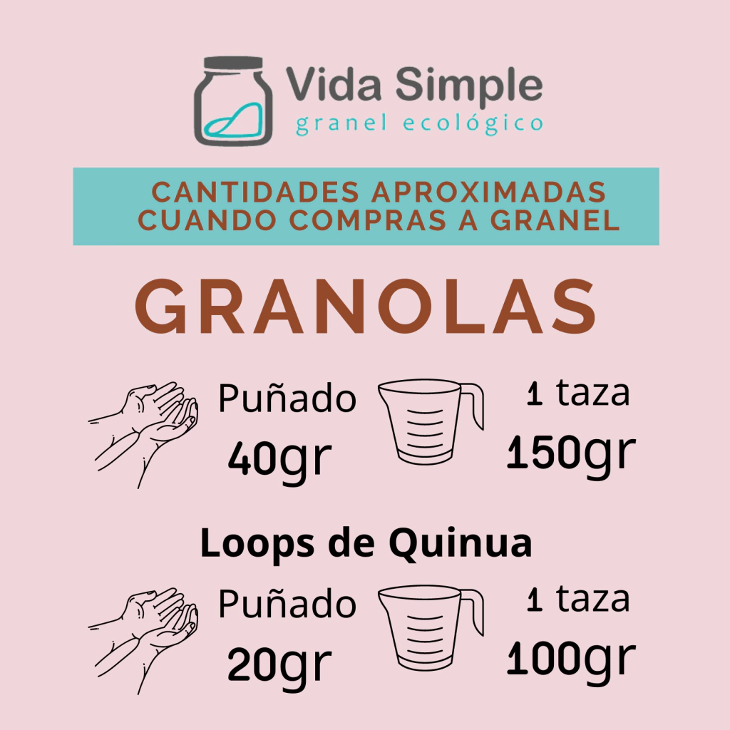 Ingredientes: Coco deshidratado sin azúcar, nuez del Brasil, linaza, semillas de girasol, endulzantes naturales (Eritritol y Stevia), esencia de vainilla, manzana deshidratada, aceite de Coco.