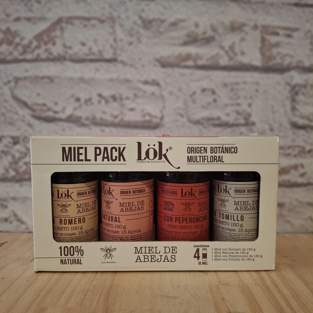 Descubre el Pack Miel Lök 600g, una selección única que combina la pureza de nuestra miel 100% natural con el toque aromático y gourmet de tres exquisitas infusiones: romero, peperoncino y tomillo.
